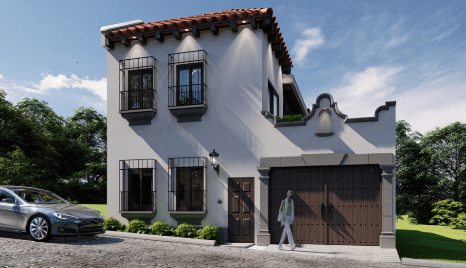 Es una vivienda diseñada con tres fachadas que permiten conectar directamente al exterior. Utiliza fachadas limpias con toques coloniales. Pensada para esntancias cortas y acogedoras.